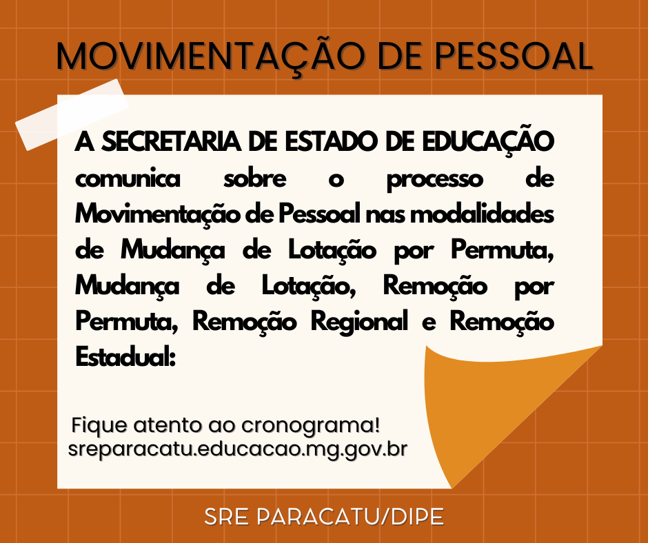 A SECRETARIA DE ESTADO DE EDUCAÇÃO por meio da RESOLUÇÃO SEE No 5.153, DE 24 DE ABRIL DE 2025, estabelece normas e define procedimentos para o processo de Movimentação de Pessoal especificamente requeridos pelos servidores ocupantes de cargos efetivos do Quadro de Magistério da Secretaria de Estado de Educação de Minas Gerais (SEEMG).