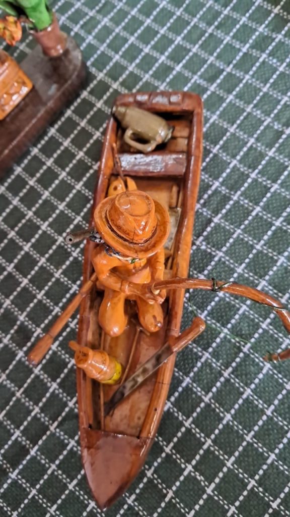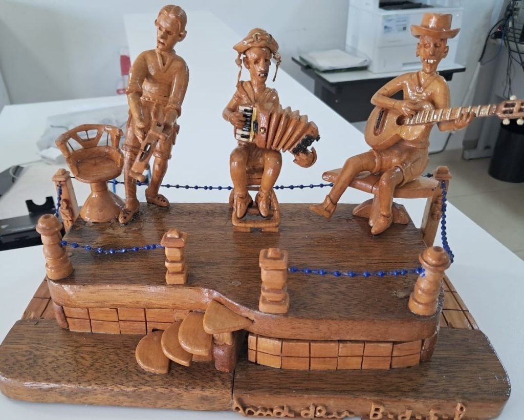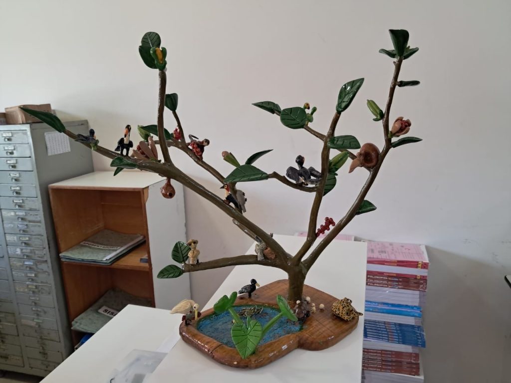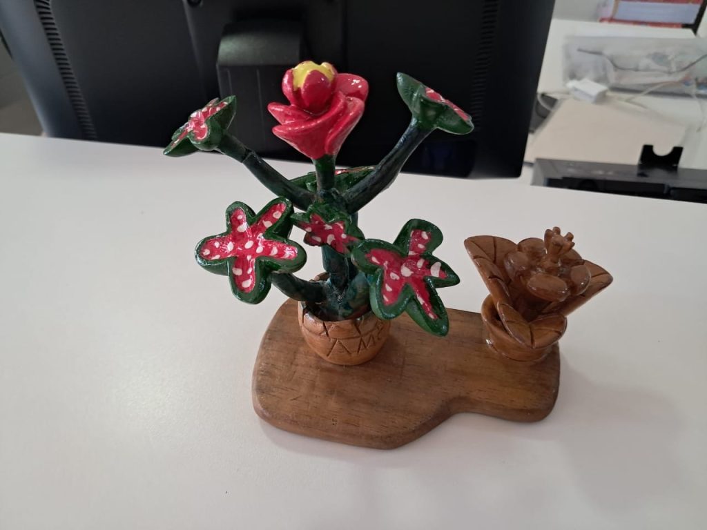 Como forma de honrar sua trajetória, as peças artesanais produzidas pelo Sr. Amadeu estão expostas na entrada da SRE. A exposição é um convite para apreciarmos a arte quilombola como uma expressão de resistência, história e identidade que atravessa gerações.